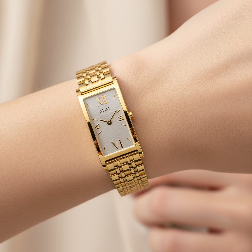 In der Damenuhr Banana | 231 von M&M Germany verbinden sich Eleganz und Dynamik stilvoll zu einer Einheit.
