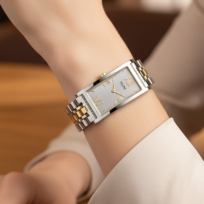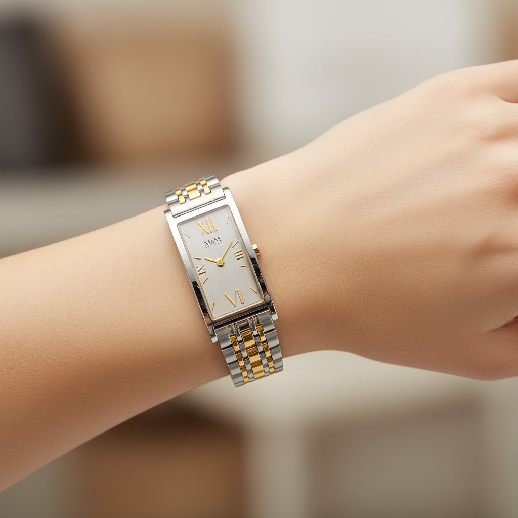 In der Damenuhr Banana | 361 von M&M Germany verbinden sich Eleganz und Dynamik stilvoll zu einer Einheit.