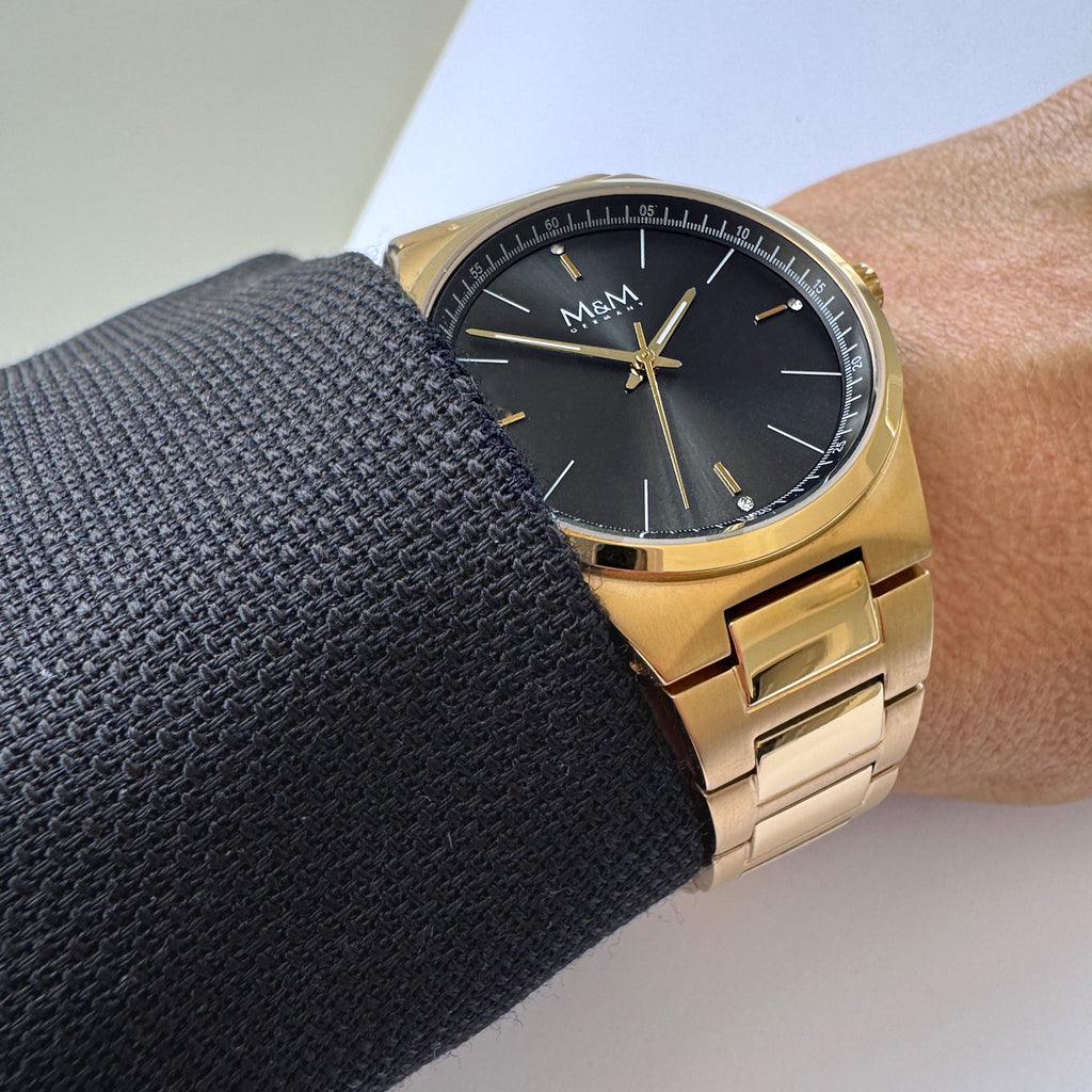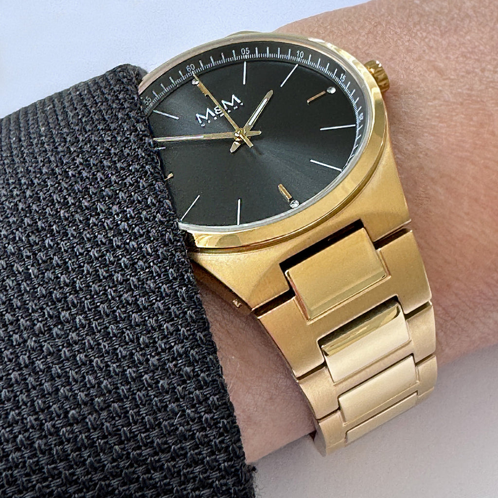 Zurückhaltend. Stark. Zeitlos. Die M&M New Classic 235 Damenuhr verkörpert pure Eleganz mit einem Hauch von klassischer Raffinesse. Ihr feines, dunkles Zifferblatt trifft auf ein hochwertiges Edelstahlgehäuse und Armband in langlebiger 14K Echtvergoldung. 4 dezente Zirkoniasteinchen auf dem Zifferblatt verleihen ihr feine Noblesse – inspiriert vom Stil derer, die nie Trends folgen, sondern Werte tragen.