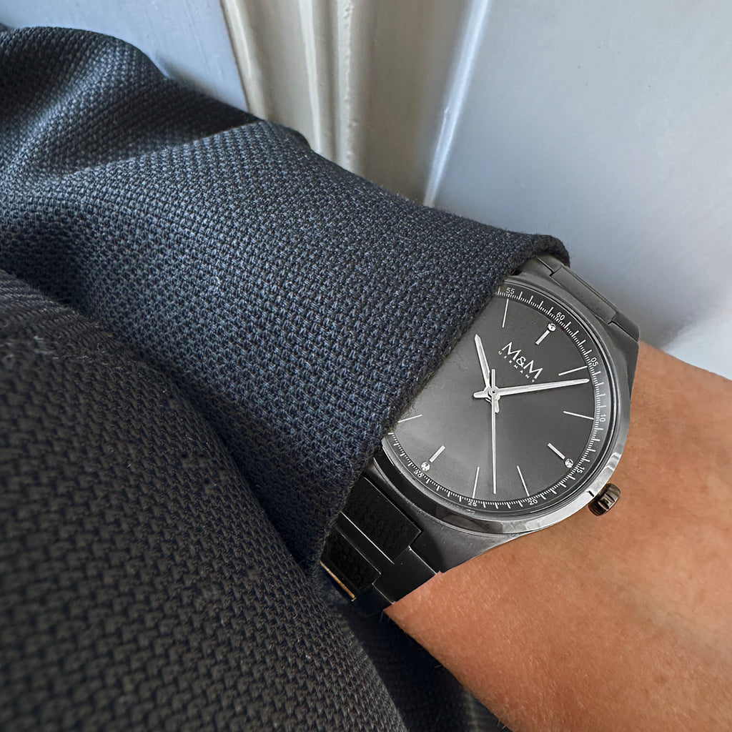 Zurückhaltend. Stark. Zeitlos. Die M&M New Classic 885 Damenuhr verkörpert pure Eleganz mit einem Hauch von klassischer Raffinesse. Ihr feines Zifferblatt trifft auf ein hochwertiges Edelstahlgehäuse und Armband in exclusivem IP Gun dunkelgrau. 4 dezente Glanzpunkte auf dem Zifferblatt verleihen ihr feine Noblesse – inspiriert vom Stil derer, die nie Trends folgen, sondern Werte tragen.
