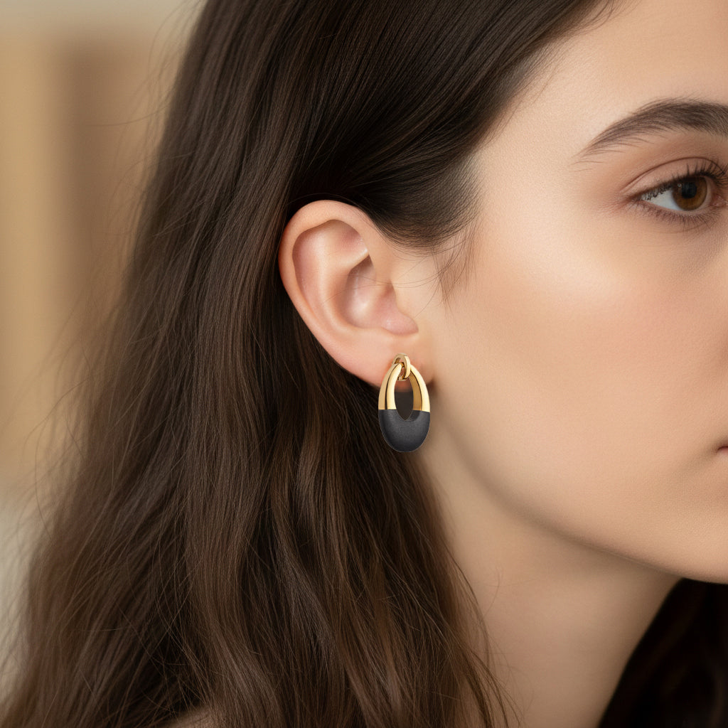 M&M Ohrhänger Oval Collection Gold/schwarz | Modell 359